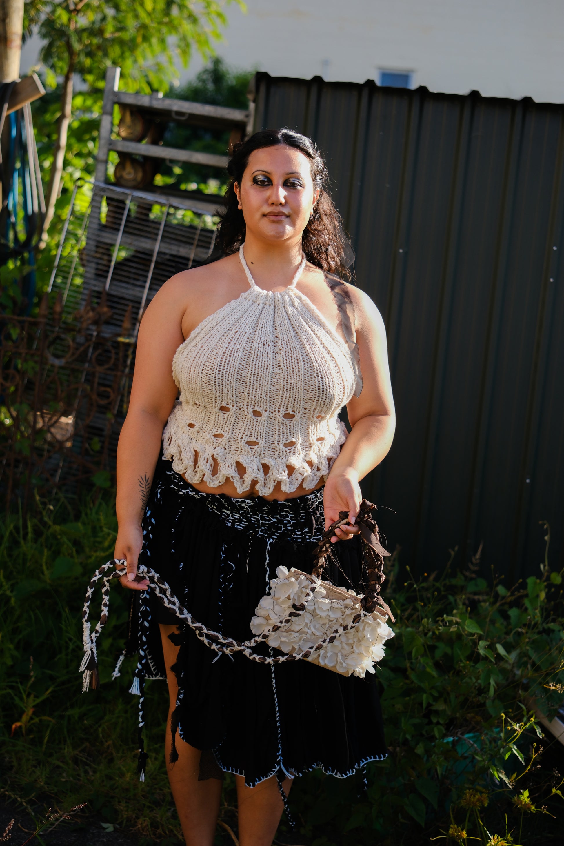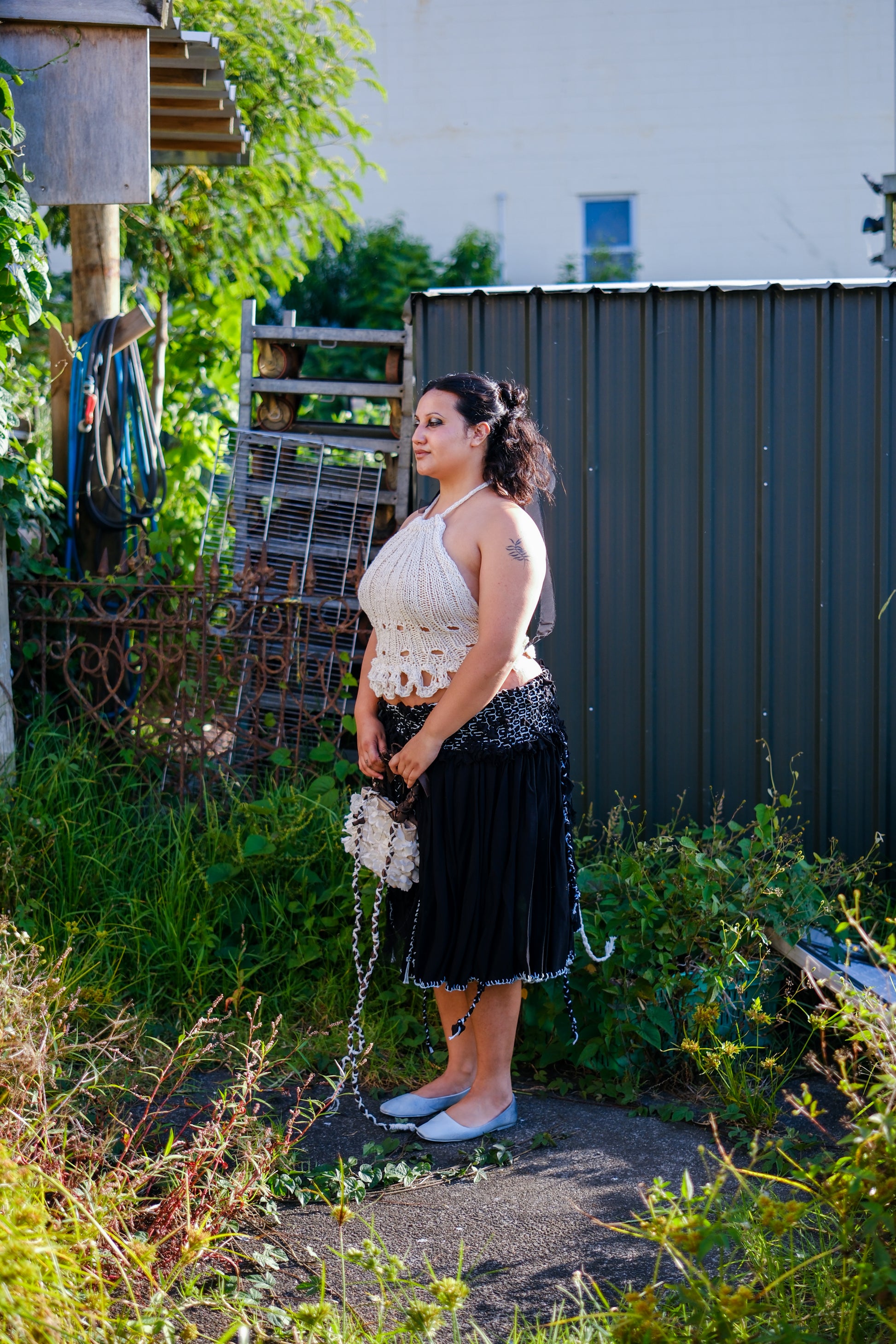 Hand knitted halter top created from cotton sourced second hand in Tāmaki Makaurau. Fully adjustable and incredibly flattering.